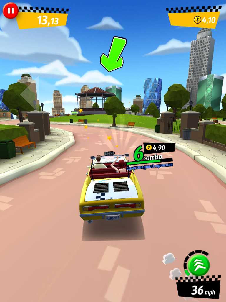 В огромном 3D-городе, включающем центр, окраины, пляжи и другие локации, твоя задача — везти пассажиров безумно быстро. Соревнуйся с друзьями из Facebook, чтобы стать лучшим таксистом на планете. Особенности Crazy Taxi City Rush: интуитивное управление, новый город для покорения и исследования, новые сумасшедшие пассажиры, разнообразие специальных миссий и задач, расширение города для увеличения доходов и маршрутов, возможность гонять под свою музыку, а также портретный и ландшафтный режимы.