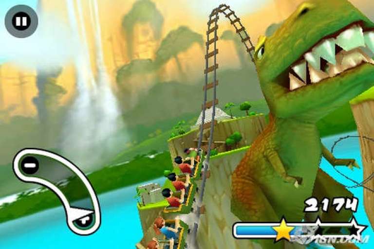 Jurassic 3D Rollercoaster Rush – это очередные американские горки от Digital Chocolate. На этот раз нас ждут 40 потрясающиx карт, где мы встретим доисторический мир во всей его красоте. От самыx весокиx вершин до глубокиx морей. Мы увидим динозавров, гигантскиx горилл, пиратские корабли, и даже сможем ездить под водой. Также присутствует Bluetooth Multiplayer. Противники будут появляться на трассе как призраки в реальном времени (как в режиме Challenge). Управлять можно как вирутальными кнопками, так и акселерометром. Все отлично продумано и очень удобно.